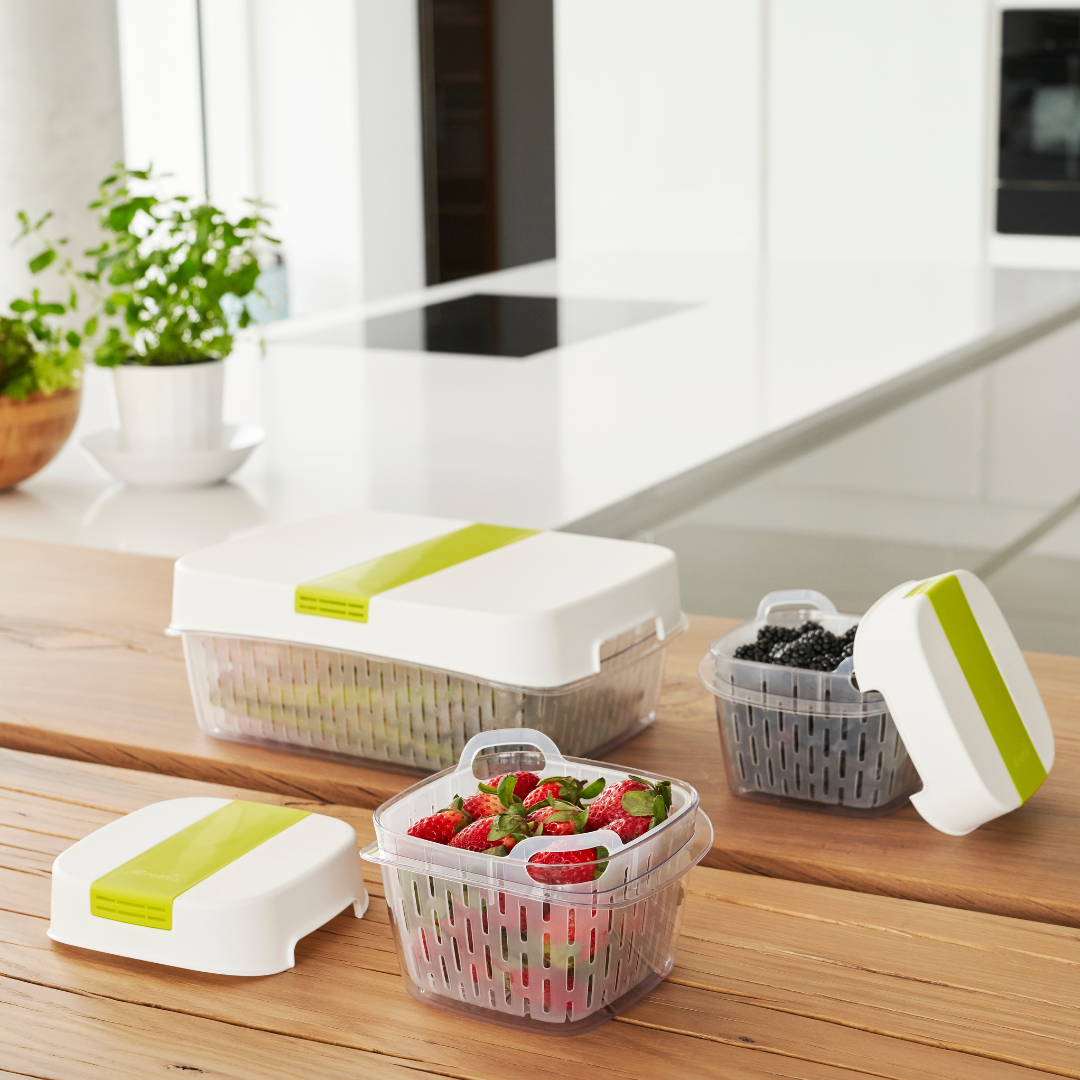 Le migliori condizioni per la vostra frutta e verdura. Un sistema di filtraggio preso direttamente dall'industria alimentare garantisce la giusta umidità e riduce l'etilene. Con quale risultato? Ispirati dalla natura, mantengono la frutta e la verdura più fresche più a lungo, contribuendo così a ridurre gli sprechi alimentari - per il bene della nostra natura.
