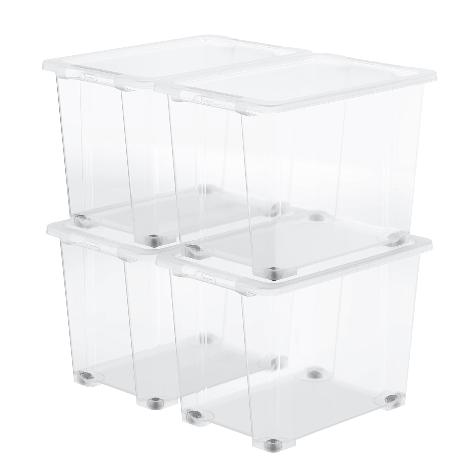 With the Rotho CORE Basic 65 l set of 4, you can create structured organization in your home in no time. Whether in a child’s room, the office, the basement or the utility room – the generous 65-liter capacity per box offers ample space for clothing, sweaters, textiles, toys, documents or shoes. The transparent design lets you see the contents at a glance, so there’s no need for time-consuming searching.