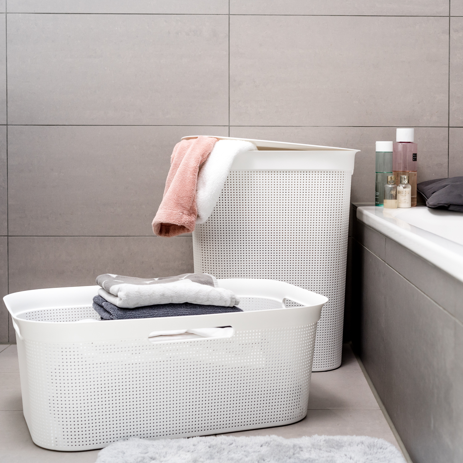 Le maniglie integrate consentono di trasportare facilmente il raccoglibiancheria sia quando è pieno sia quando è vuoto. Il coperchio impedisce la fuoriuscita di cattivi odori, garantendo allo stesso tempo una ventilazione adeguata della biancheria. Il raccoglibiancheria Rotho rappresenta una valida alternativa al classico cesto per il bucato. Ovunque venga posizionato, l’ambiente appare sempre ordinato quando la biancheria sporca viene riposta all’interno e il coperchio viene semplicemente chiuso.