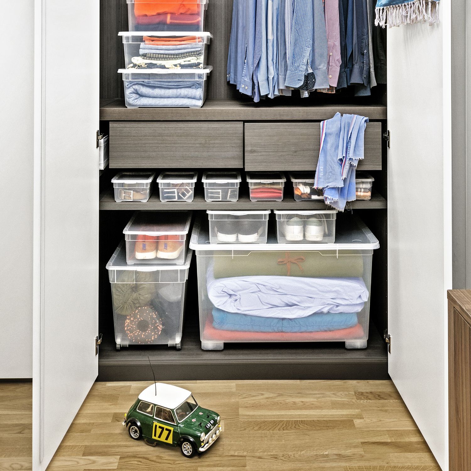 Questo pratico set di due contenitori trasparenti da 63 litri ciascuno offre una soluzione funzionale ed esteticamente gradevole per la casa. Realizzati in plastica altamente trasparente e molto resistente, i contenitori si puliscono facilmente e permettono di vedere il contenuto a colpo d’occhio. I coperchi sono completamente rimovibili e si chiudono saldamente su due lati, proteggendo in modo ottimale gli oggetti da polvere e sporco. Grazie alla struttura robusta, i contenitori possono essere impilati con il coperchio o inseriti uno nell’altro senza coperchio per risparmiare spazio. Quattro ruote robuste facilitano lo spostamento anche quando sono pieni, garantendo la massima praticità nella vita quotidiana. Che si tratti di vestiti, giocattoli, accessori per hobby o scarpe – le possibilità d’uso sono quasi illimitate. Il sistema offre inoltre diverse dimensioni e formati combinabili per organizzare al meglio lo spazio. Ogni contenitore è dotato di un codice QR AppMyBox integrato. Basta scaricare gratuitamente l’app da Google Play o dall’App Store, scansionare il codice e tenere sempre tutto sotto controllo – mantenere l’ordine non è mai stato così semplice ed efficiente.