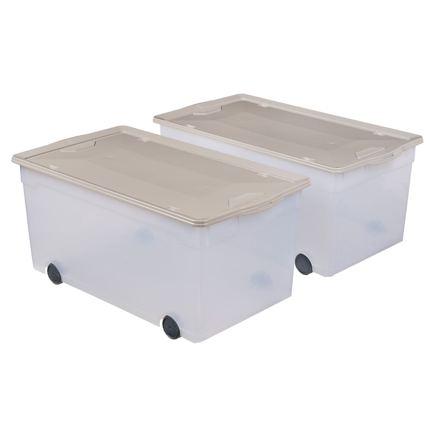 - 2 contenitori trasparenti da ca. 63 L ciascuno, con 4 ruote robuste per contenitore