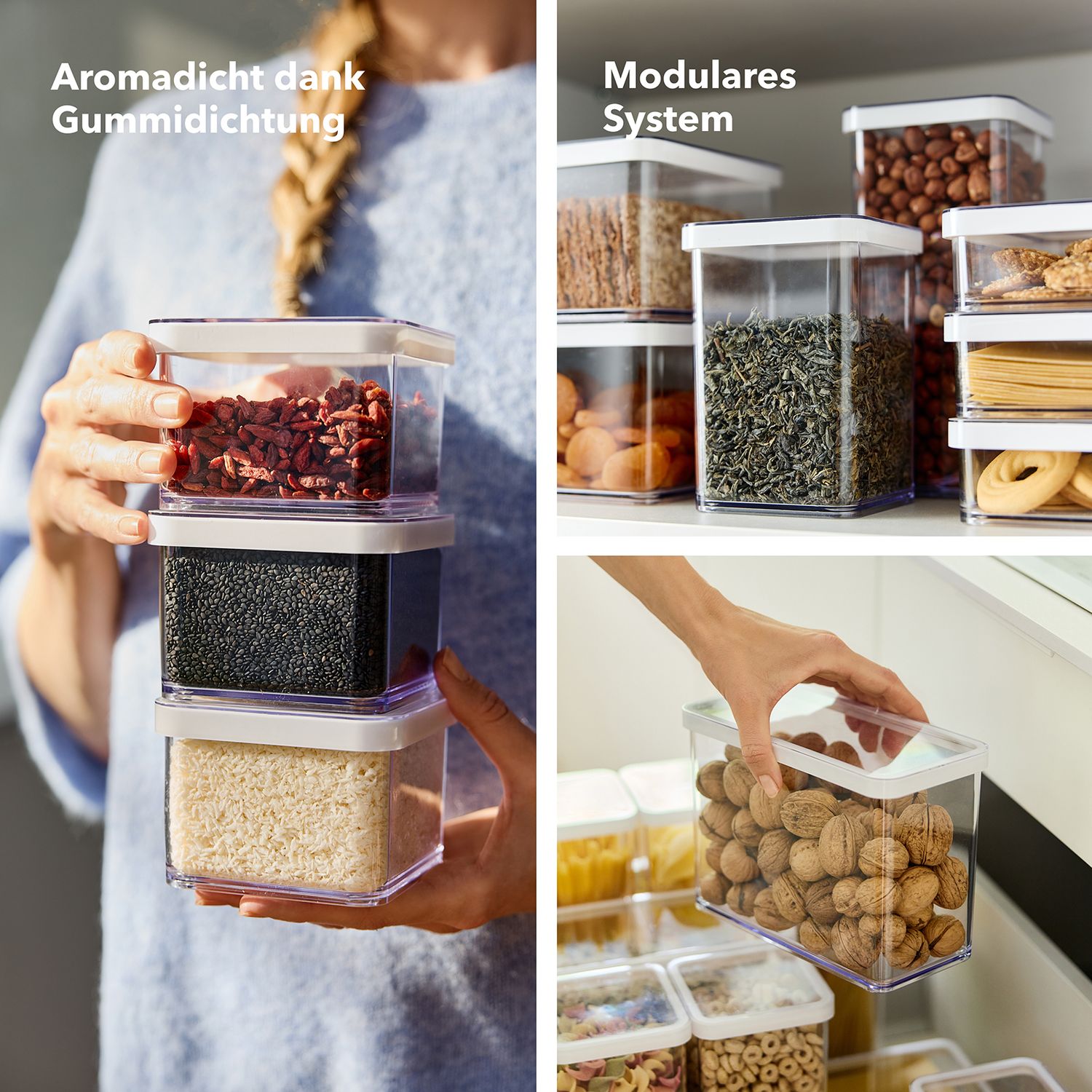 - Sistema di organizzazione intelligente: set di contenitori per alimenti secchi, ermetici & impilabili, ideale per l’organizzazione della cucina